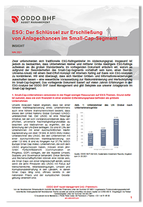 Zwar unterscheiden sich traditionelle ESG-Ratinganbieter im Abdeckungsgrad. Insgesamt ist jedoch zu beobachten, dass Unternehmen kleiner und mittlerer Größe niedrigere ESG-Ratings aufweisen als die großen Standardwerte. Im vorliegenden Dokument erläutern wir, warum es aufgrund der Besonderheiten des Small-Cap-Segments vorteilhaft sein kann, einen Best-in-Universe-Ansatz mit einem Best-Effort-Konzept mit internem Rating auf Basis von ESG-Analysen zu kombinieren. Wir sind überzeugt, dass sich hierüber Größen- und Informationsverzerrungen ausschalten lassen – eine wesentliche Voraussetzung zur Risikominimierung und Wertschöpfung im Small-Cap-Segment. Das vorliegende Dokument basiert auf vielen Jahren Erfahrungen in der ESG-Analyse bei ODDO BHF Asset Management.
